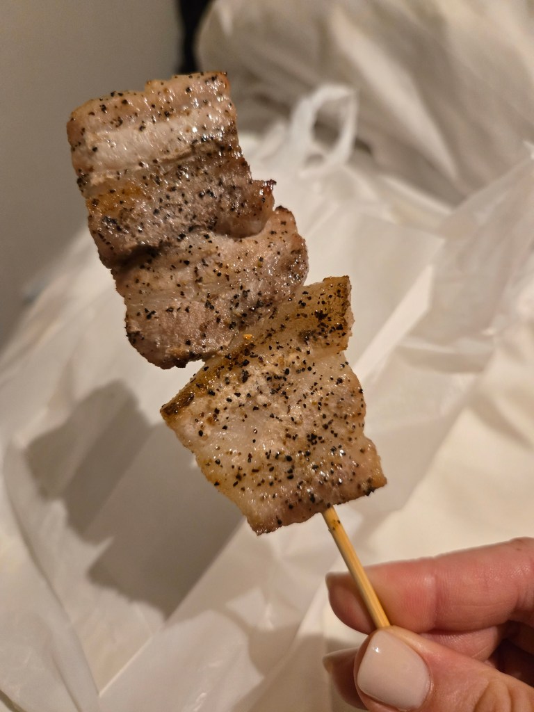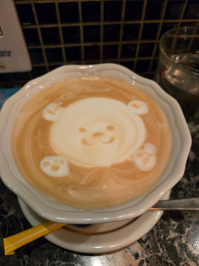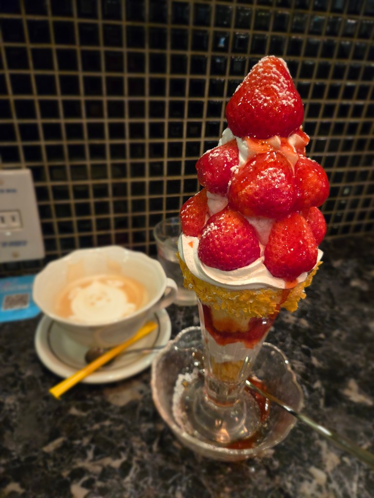 After settling into the hotel, hubby went to grab food at Mosburger and I found a local cart selling yakitori. Then, I found a cute cafe and grabbed a delicious latte and strawberry ice cream.