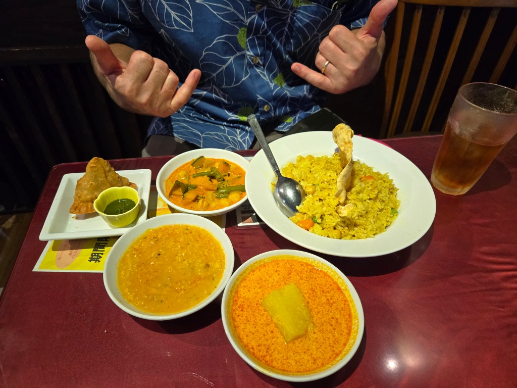 We had to catch a bus that didn’t come by very often. Hubby was talking story to someone and forgot his phone at the bus stop, so we actually had to abandon ship and run back to find it. The kind person at the bus stop had brought it to a local police station as a lost item, so hubby had to fill out paperwork to retrieve it. Since we missed our bus and had to wait for the next one, we filled the time by having a well-earned lunch at this restaurant: