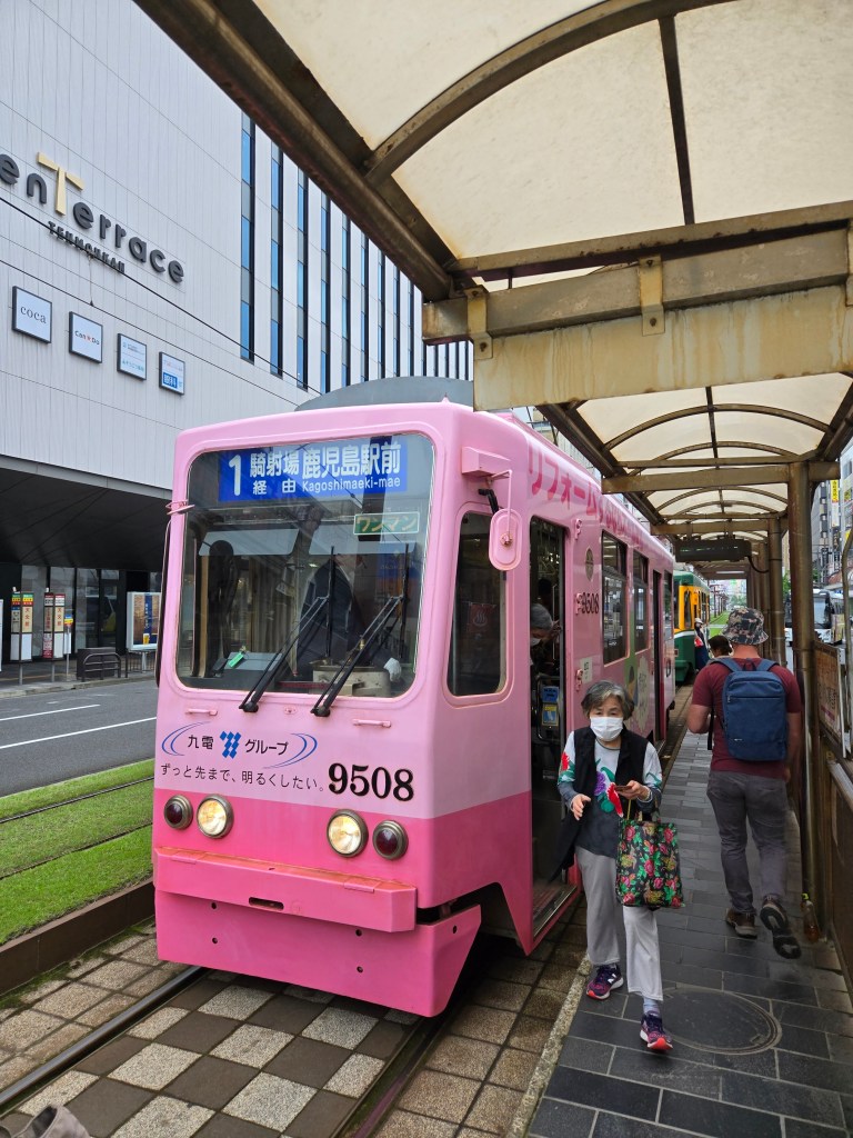 Hubby wanted to take me to Kirishima shrine, so we boarded a PINK tram (YAY) and arrived at our stopover point (Kirishima city).