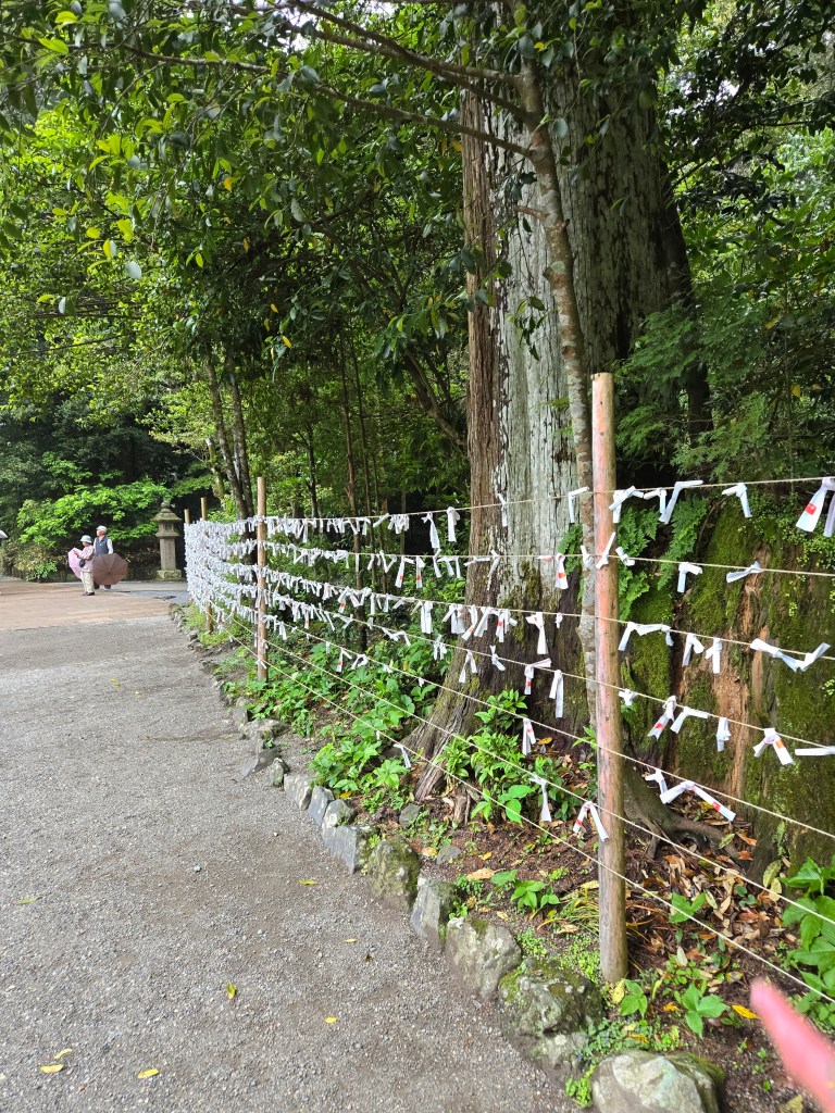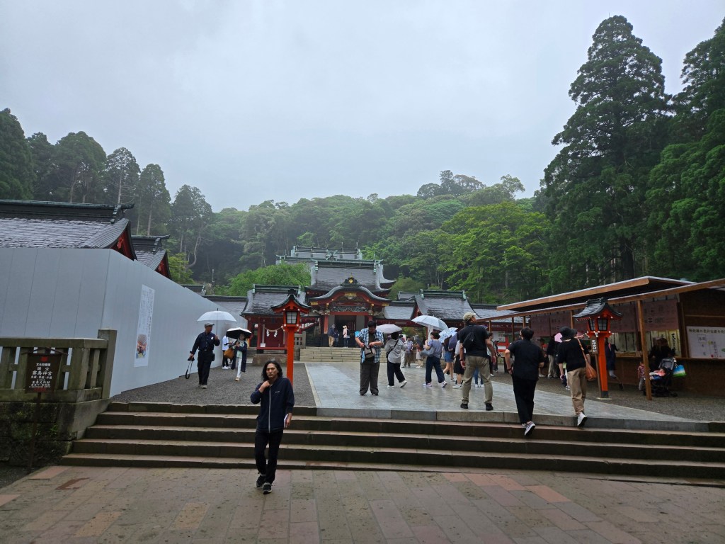 Walking up to the entrance of Kirishima Jingu, we saw many fortunes tied to strings. Despite it being slightly rainy (drizzly, really) on and off, there were plenty of visitors.