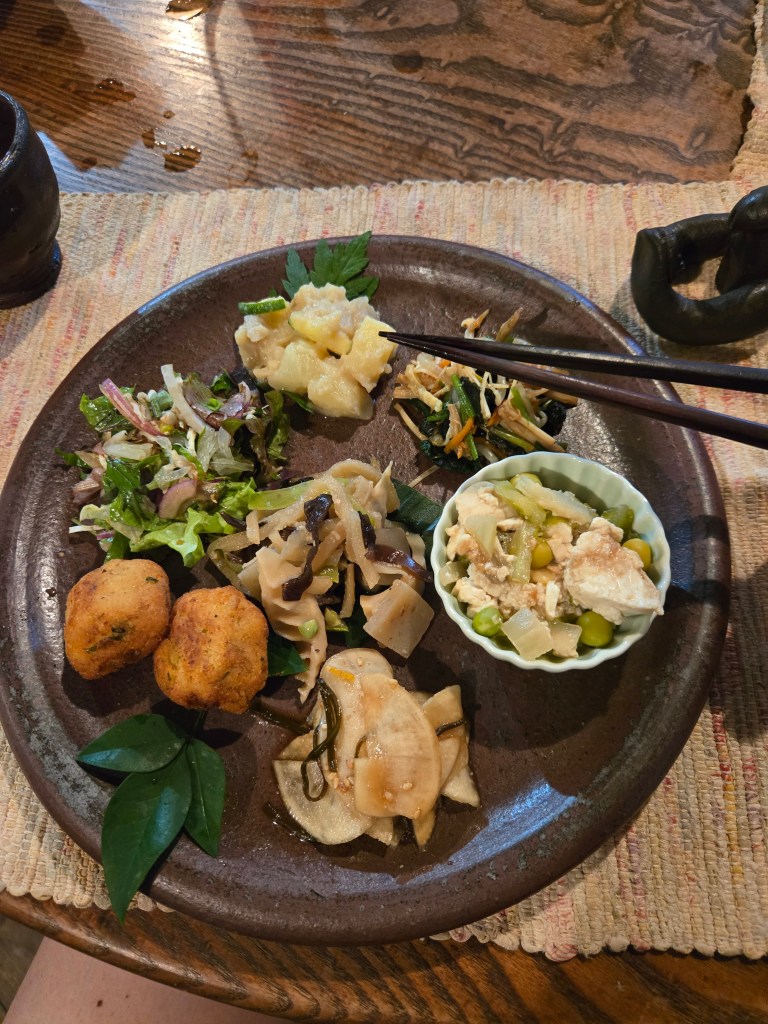 Upon arrival, we found foot baths and trails. It was clearly very rural, and it seemed like by the port there was only one convenience store. After walking around, we took the bus to an area by a restaurant that my hubby had looked up ahead of time and really wanted to visit. Unfortunately, when we came up on the restaurant after our walk, it was closed, so we ended up deciding to do onsen instead (we had come across a local onsen while wandering). It was so nice. Although, if you have tattoos they will ask you to rent a private onsen instead of using the public one. We were happy to do so, as the price was not bad, I think it was something like $1,000 yen for both of us.