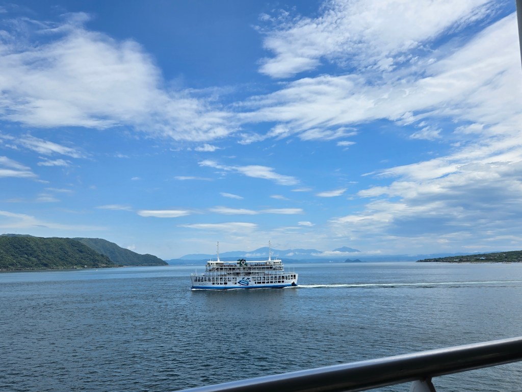 The views were gorgeous despite it being partly cloudy. The volcanic ash coming from the volcano in the distance really made an impression on me. Especially knowing how close we were to it, being in Kagoshima.