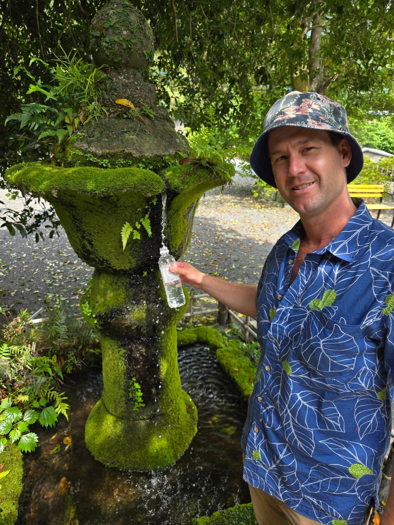 A monk gave us our tickets when we paid, and before we walked in, we filled up on some special water that they had flowing. The sign verified that it was delicious and hubby had heard that Kumamoto had famously good groundwater, so we filled up and drank it without reservations.