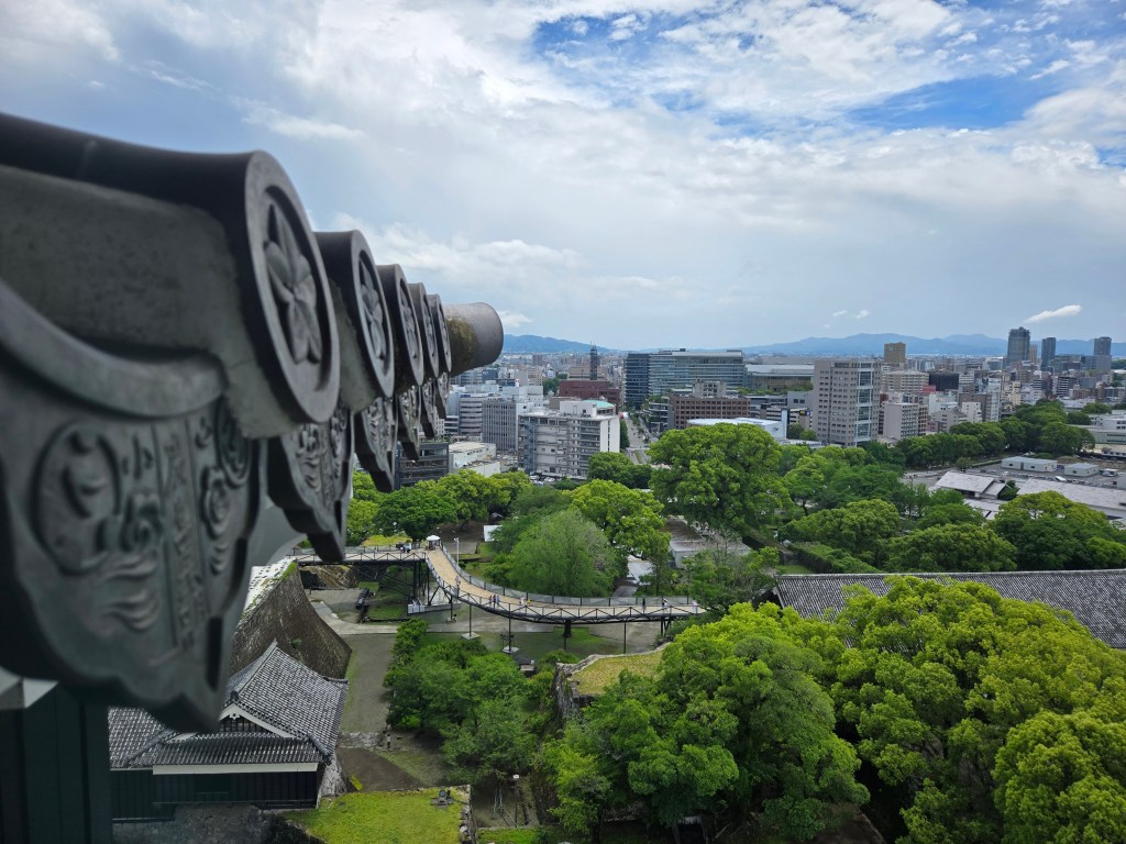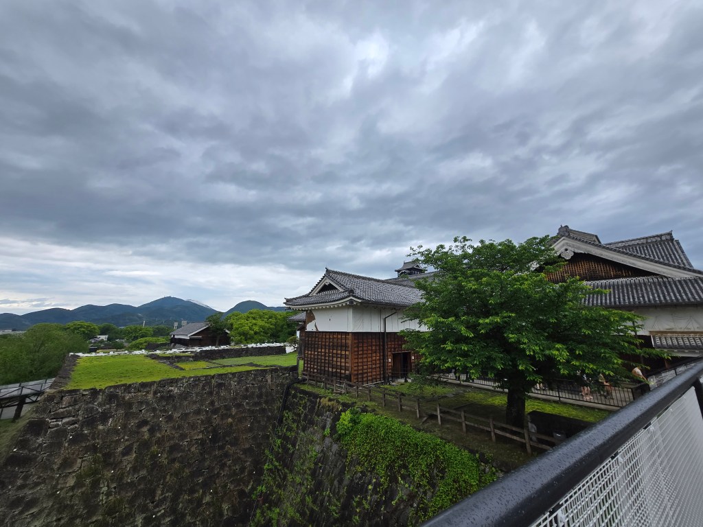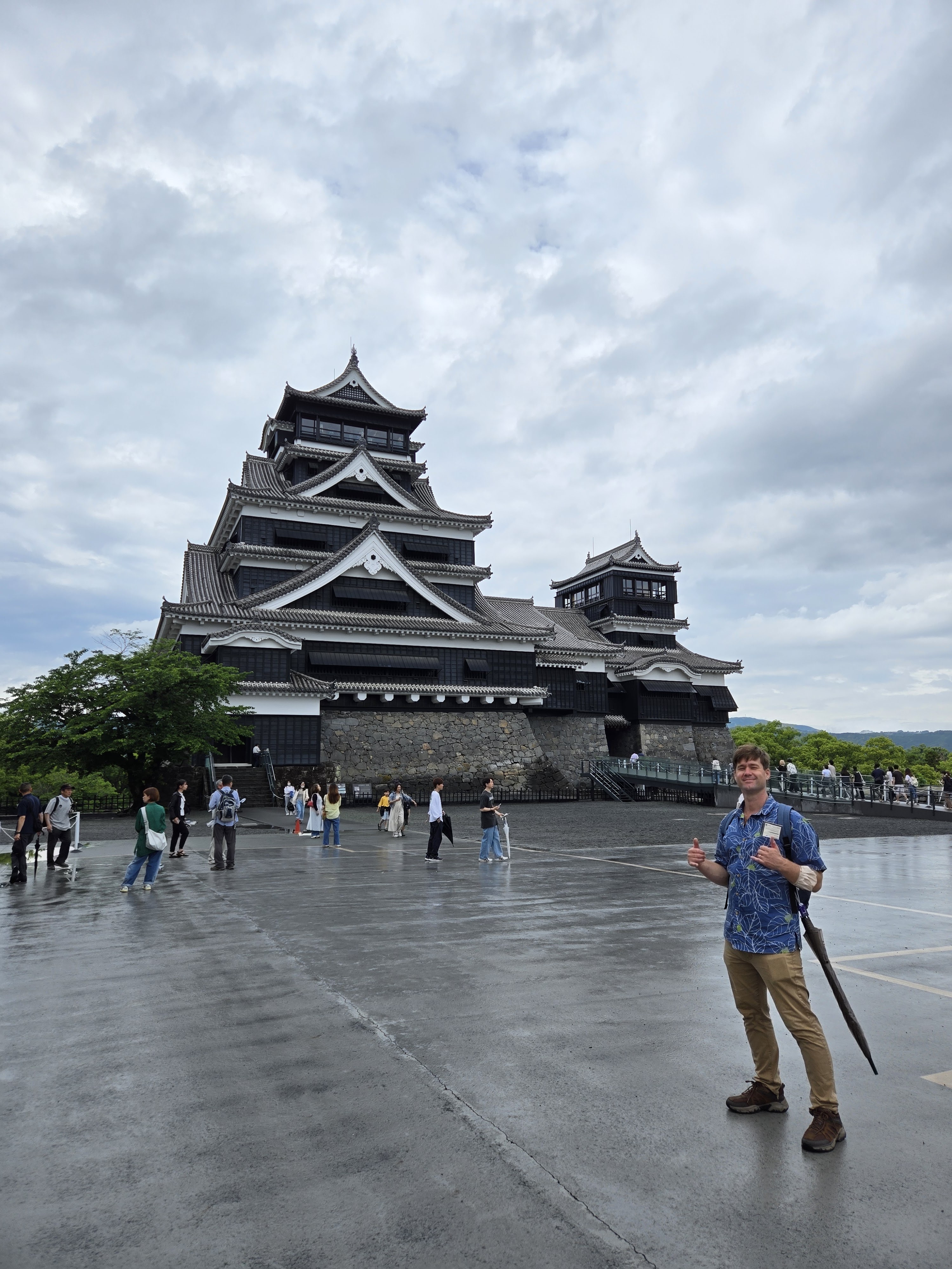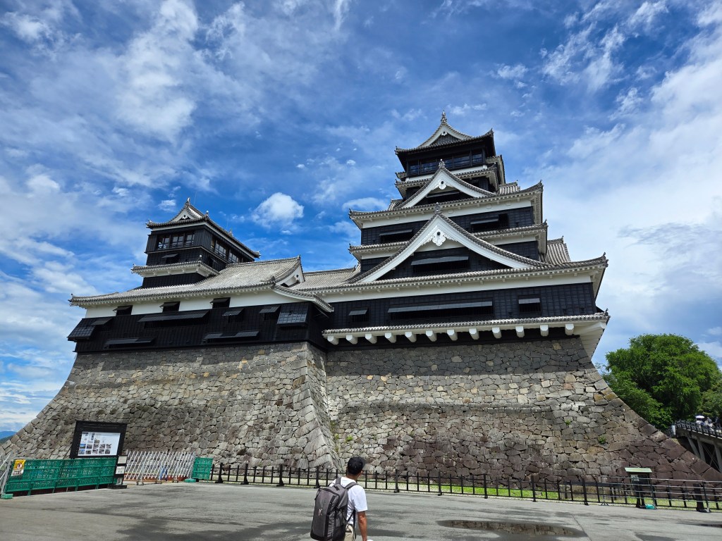 The next day, we visited the Kumamoto castle. It was gray and overcast, but didn’t pour on us, so it was fine weather overall.
