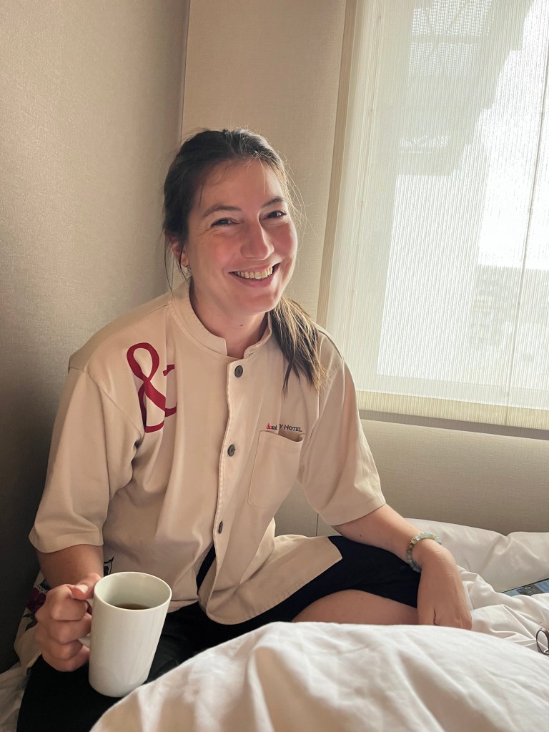 The next morning, hubby made some tea while I enjoyed the hotel’s coffee.