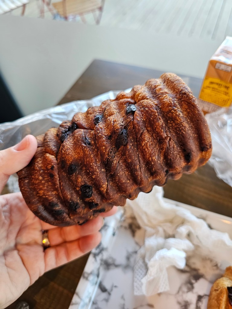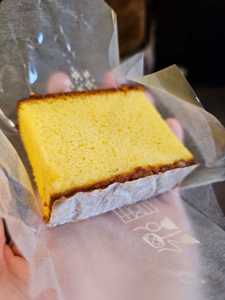 It’s very unassuming, and I was ready to not be impressed based on the fact that it just looks like plain yellow cake. Boy, was I wrong. It is this perfect, bouncy, soft cake with a lovely not-too-strong flavor and deliciously perfect crust at the bottom that had intact cane sugar crystals embedded in it. It was definitely worth the money, turns out.