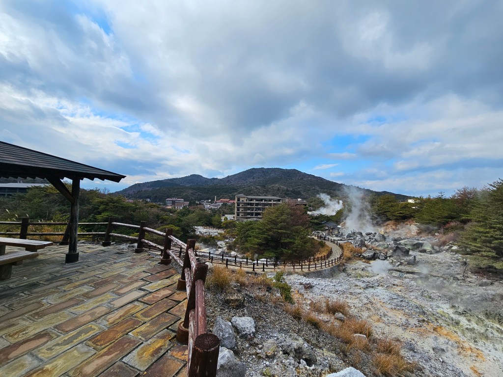 Unfortunately, the Unzen onsen was found to be closed at the time, so we had bad luck with that. Instead, we went up to a higher lookout for a breathtaking view of the area: