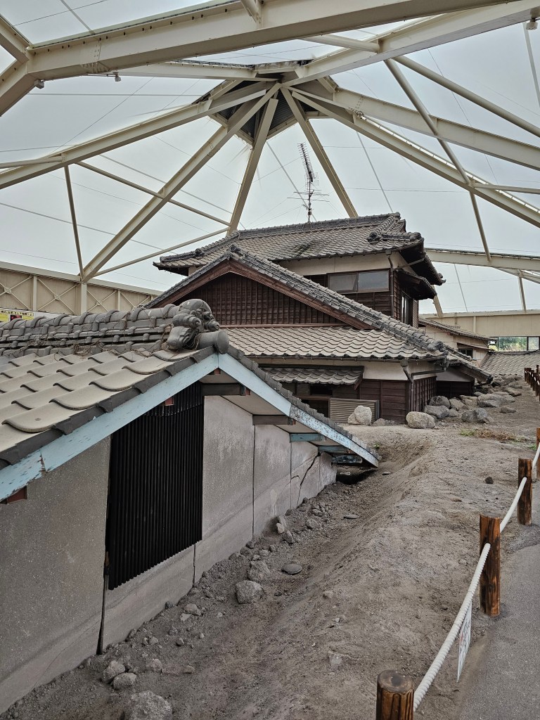 He then drove us to see the Unzen volcano, which was still active. When it explodes, it creates pyroclastic flow which is also what damaged Pompeii. The Unzen eruptions have indeed caused incredible damage in the past. The building seen here was a museum – they showed us a short video of the eruption, and the damage it caused. It ruined a school building and buried houses deep in the flow.