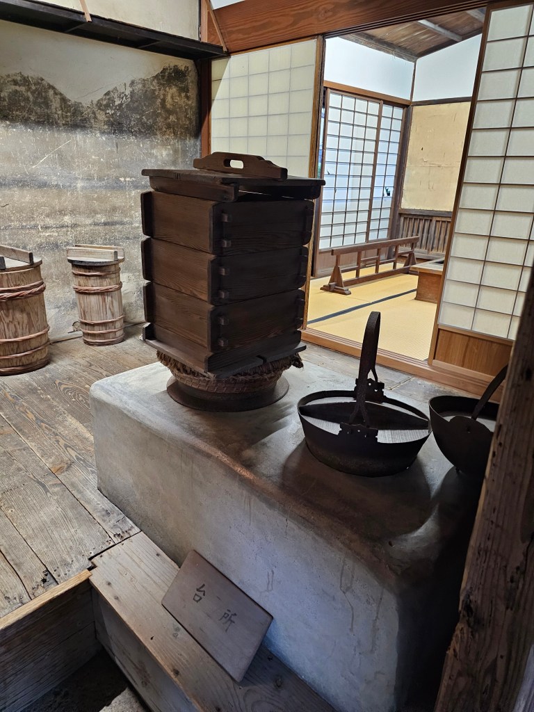 We passed by the Shimabara castle, and he took us to some old Samurai houses that had been preserved as a museum. I was particularly fascinated by the tofu press, their kitchen, and the living quarters.