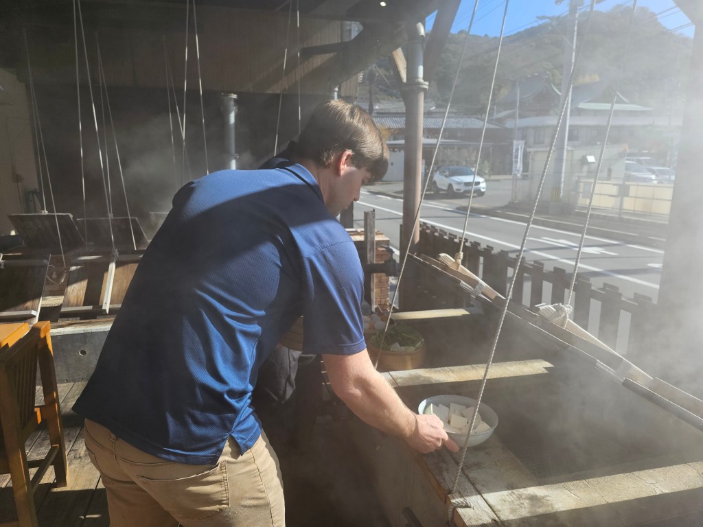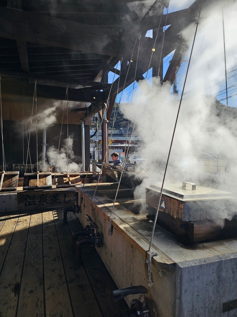 One of the first things we found was this hostel that had onsen, and allowed you to steam/cook your own food with the onsen steam!! It was so cool. The onsen was also top-notch. You don’t have to stay there overnight to enjoy it – they offered day passes as well. After inquiring about the process, we decided to do that. In order to cook though, we had to find a local grocery store.