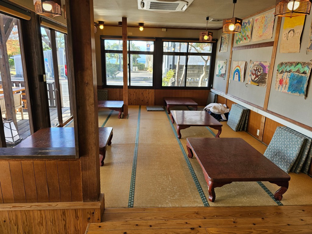 The dining/kitchen area – they had a cute little counter where you could pay a small fee and they let you make your own coffee from freshly-ground beans. The kitchen had everything you needed in terms of equipment to cook and dishes to eat with. The staff are there to help you figure out how to steam your food with the system they have on their lanai (balcony/patio) and it was so relaxing to enjoy our coffee at the tables outside while our food steamed. It was a lovely autumn day. We took our food inside and prepared sauces to dip. The low tables, cushions and tatami floor was very comfortable and my hubby brewed up some green tea to enjoy. I still remember what a great experience it was. I would definitely have enjoyed staying there as a guest.